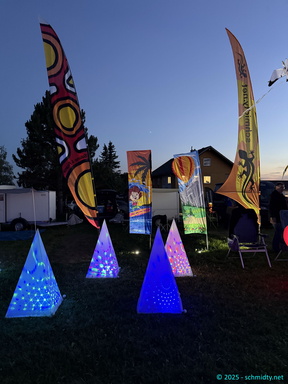 Das Drachenfest Leibertingen hat am Samstag bei schönem und sonnigem Wetter begonnen. Wir haben zusammen mit den anderen Drachenfliegern verschiedene Drachen geflogen und abends unser Drachenlager beleuchtet. Der Samstag ist mit dem Feuerwerk von Reinhold von der Drachenbox Biberach ausgeklungen.