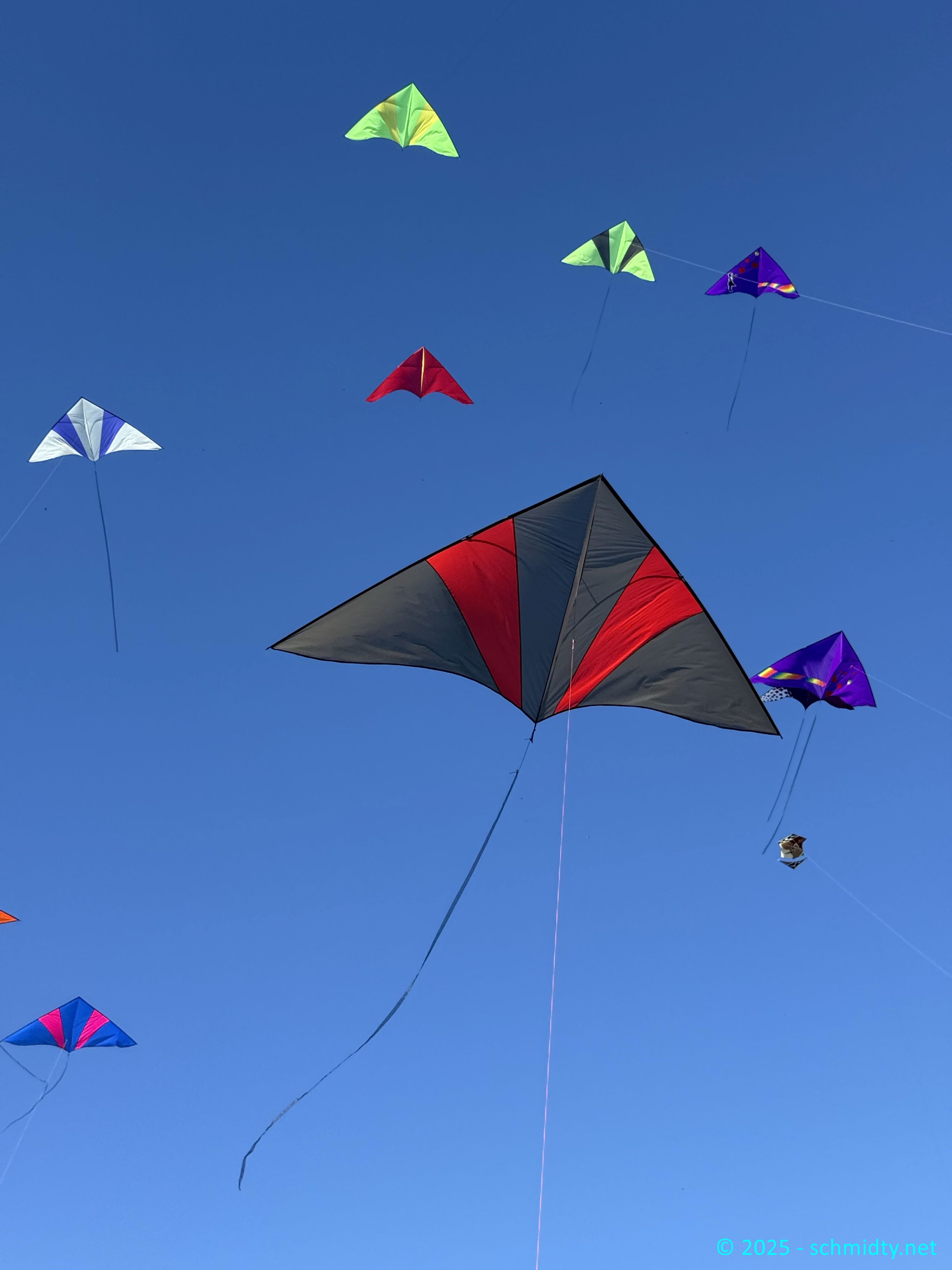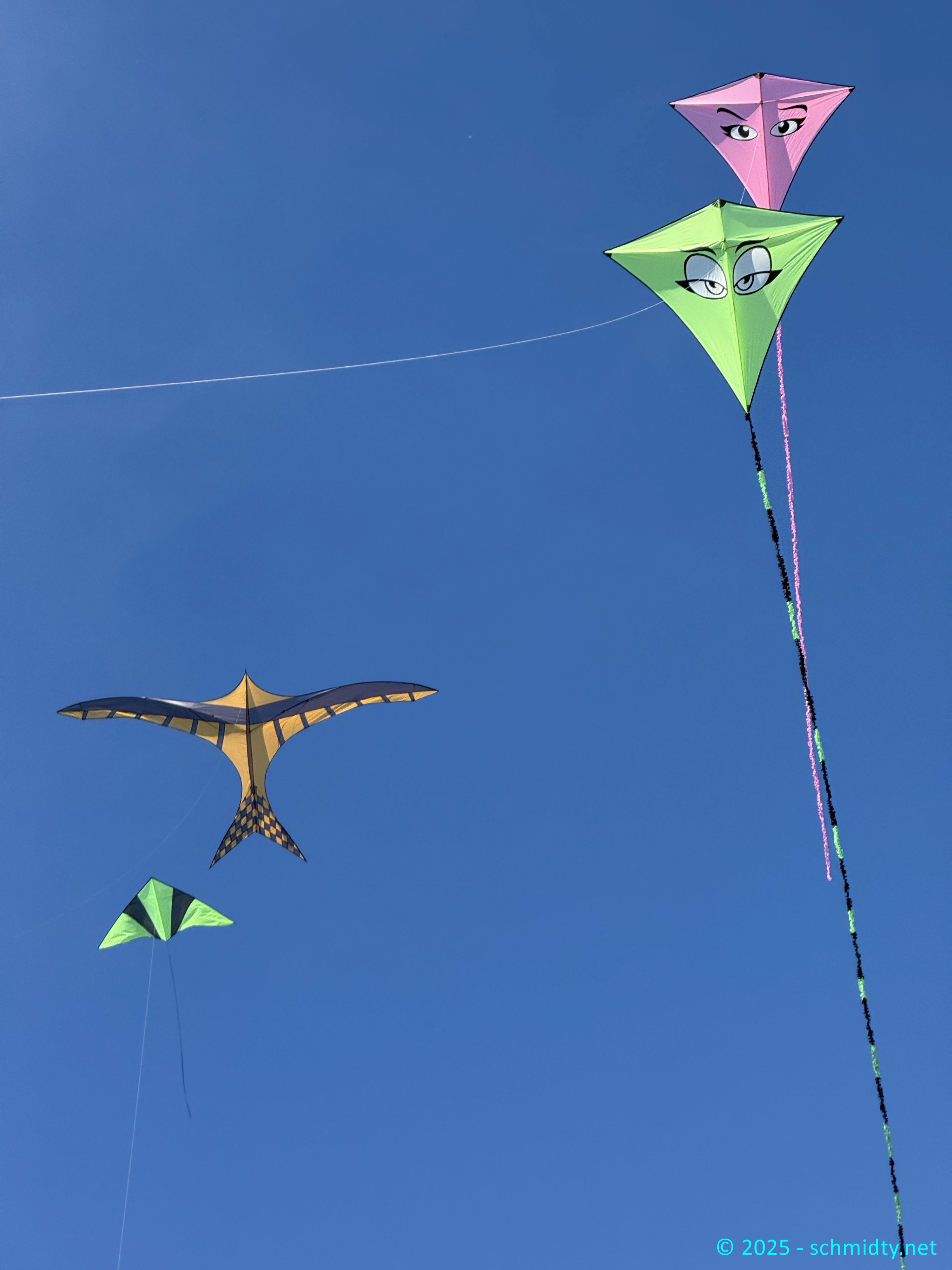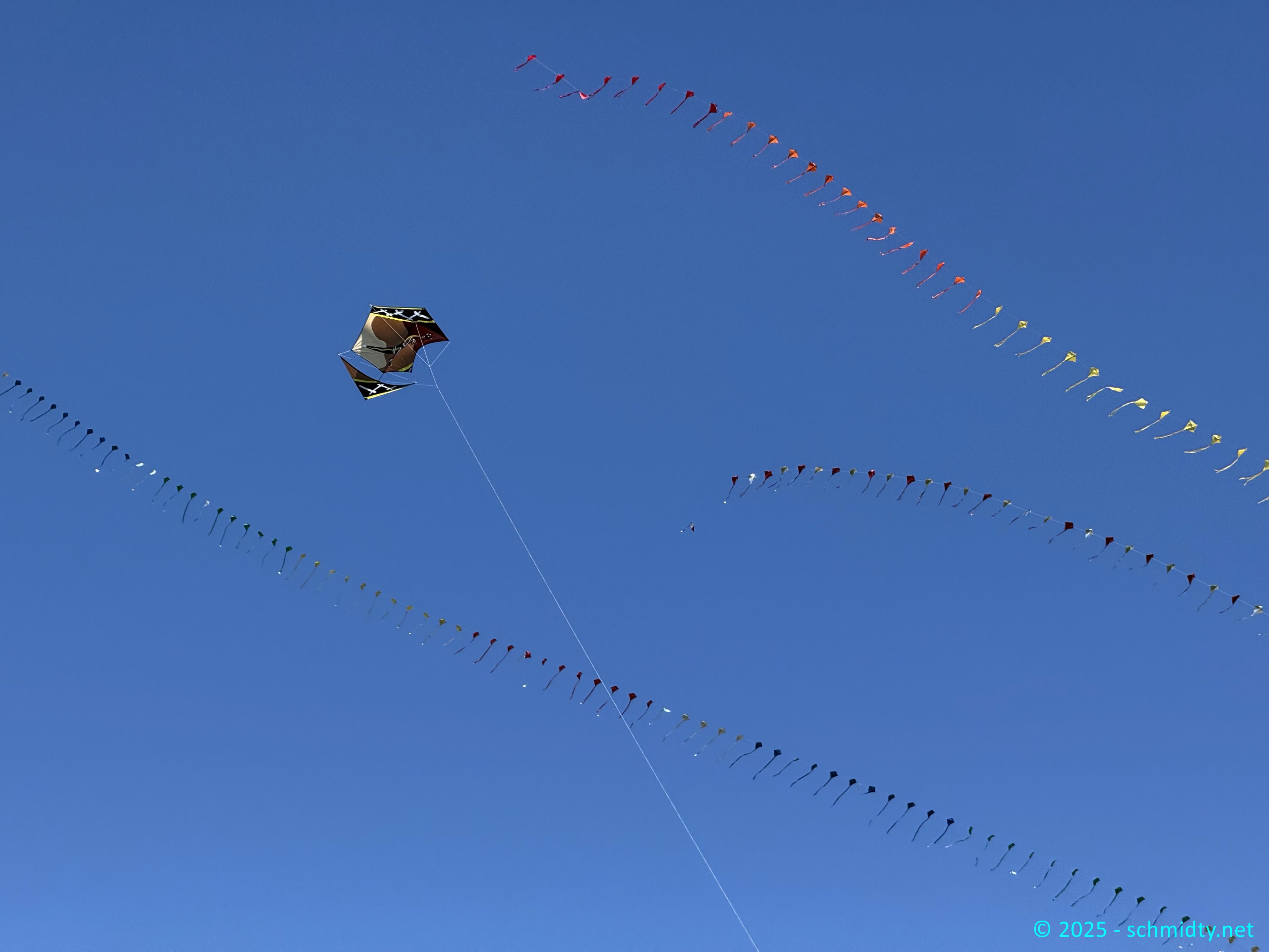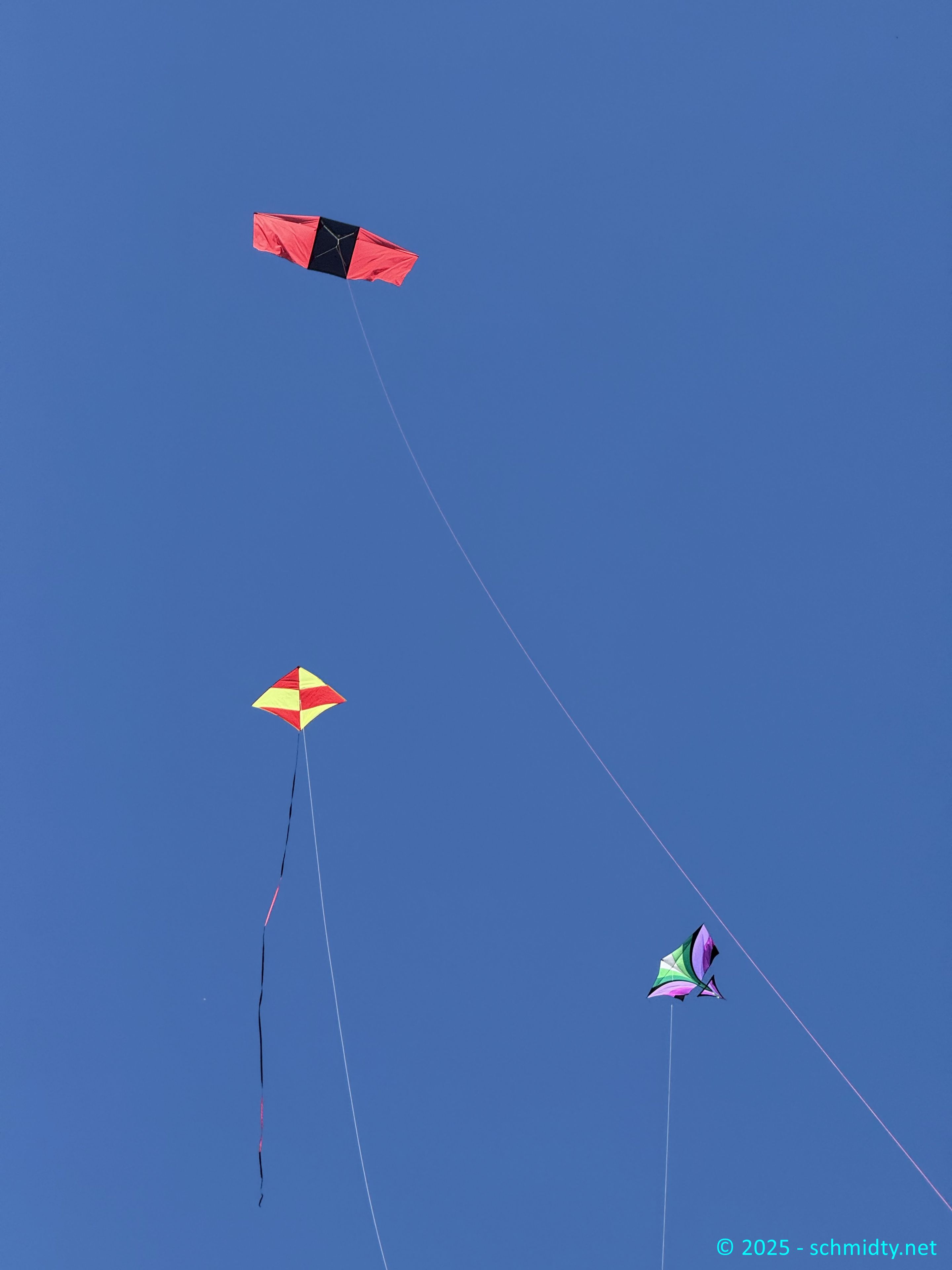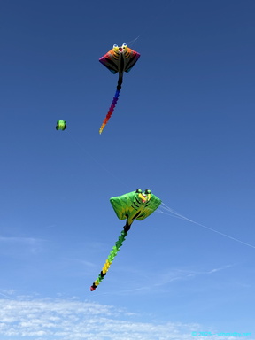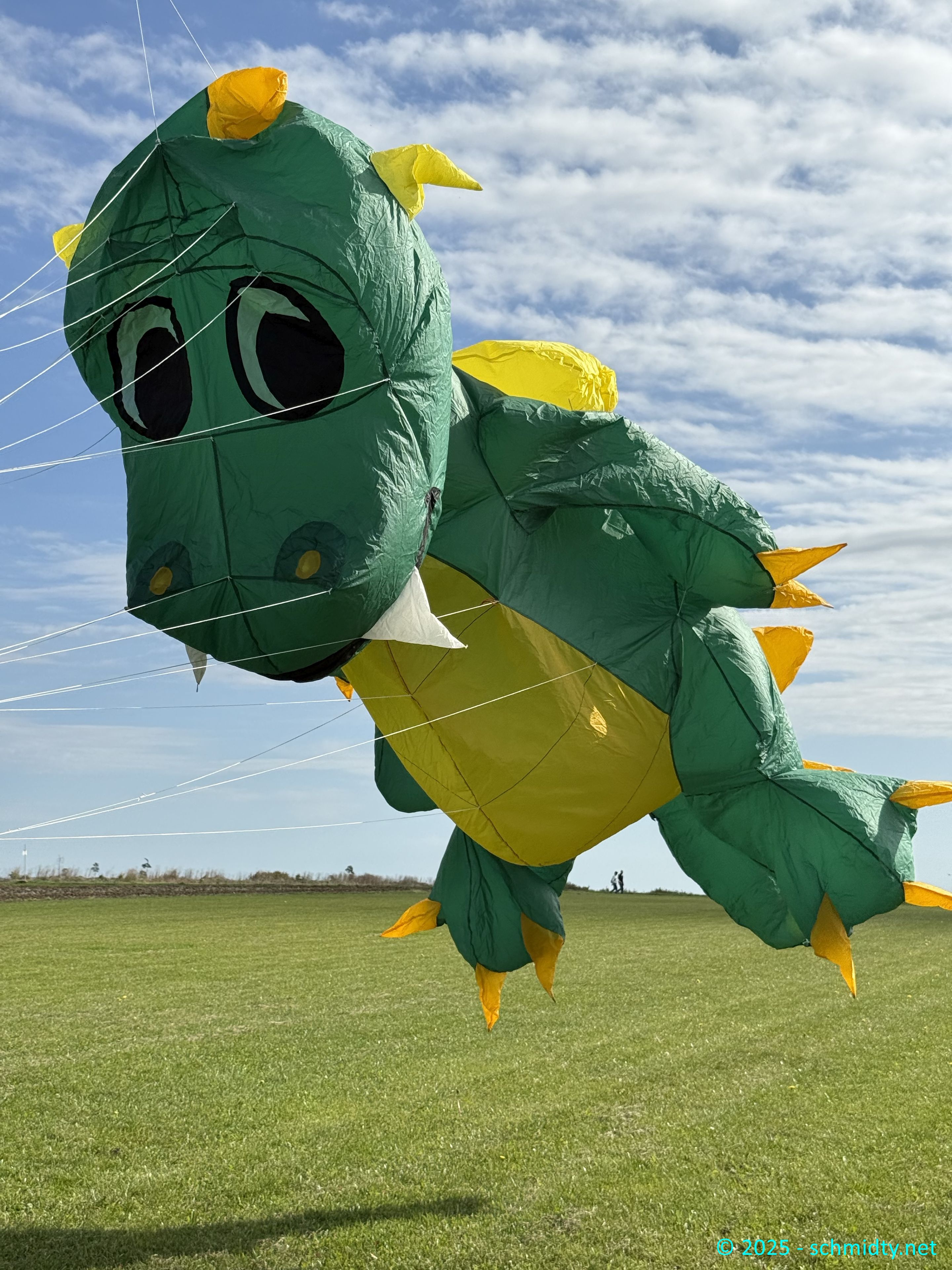 Am Sonntag war das Wetter wesentlich kühler und der Wind ungleichmäßiger und ruppig. Wir konnten aber auch am Sonntag viele Drachen zeigen, bevor wir am Sonntagabend bei kühlen Temperaturen den Heimweg angetreten haben.